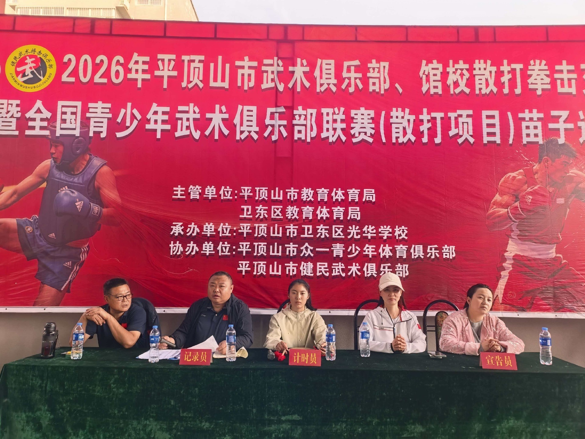 凤凰新闻网络电视台(记者刘国敏 孟庆涛)讯:2026年4月25日上午,由河南省平顶山市武术协会主办,平顶山市众一青少年体育俱乐部、平顶山市健民武术俱乐部协办的2026年平顶山市武术俱乐部、馆校拳击交流赛暨全国青少年武术俱乐部联赛(散打项目)苗子选拔赛,在承办单位平顶山市卫东区光华学校校园内成功举办。