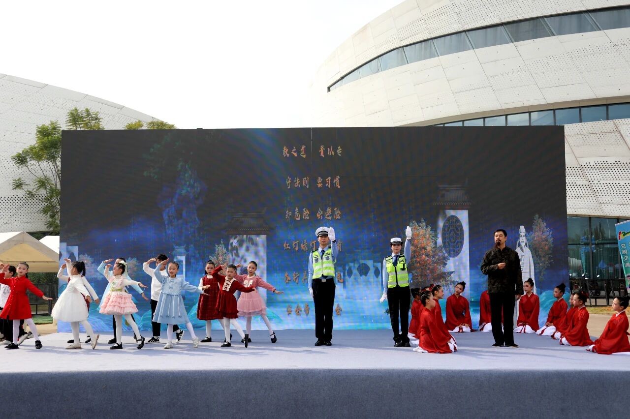 箭盘山小学学生们带来的《礼行天下》节目充满童真与教育意义,孩子们用诗歌的形式诠释“礼让”不仅是中华礼仪,更是交通安全中的文明。