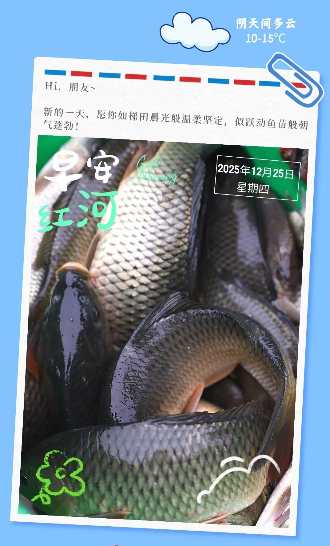 新的一天,愿这跃动的鱼苗载着希望游向丰收,愿每一份耕耘都有回响,日子如梯田波光般璀璨、生活似鲜鱼跃水般鲜活。不负晨光,不负热爱!(来源于云南红河发布)