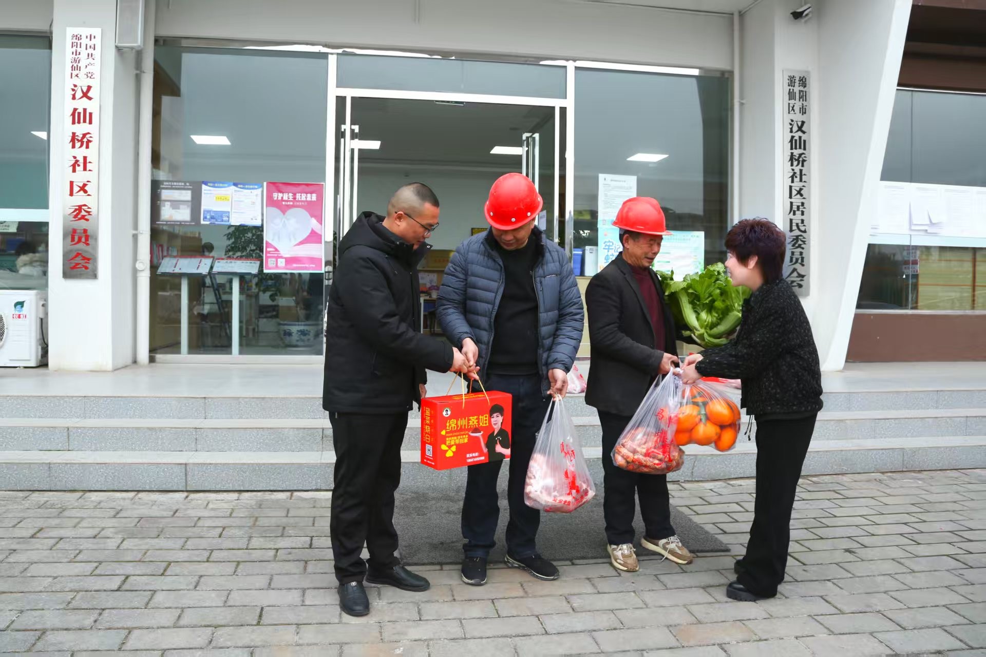 随后绵州燕姐又来到游仙区,由汉仙桥社区党委书记书记王兴关安排下,社区主任朱小槐陪同燕姐慰问社区农民工和困难残疾人,绵州燕姐为他们送上礼品盒,水果,香肠和新鲜猪肉。绵州燕姐又专门派车为安州区残疾人梁明洪送去了新鲜猪肉。游仙区的农民工把自己种的青菜送给燕姐以表谢意。