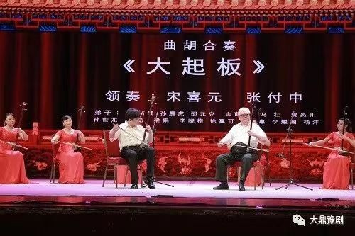 (图为宋喜元与弟子张付中领奏曲剧名调《大起版》。)