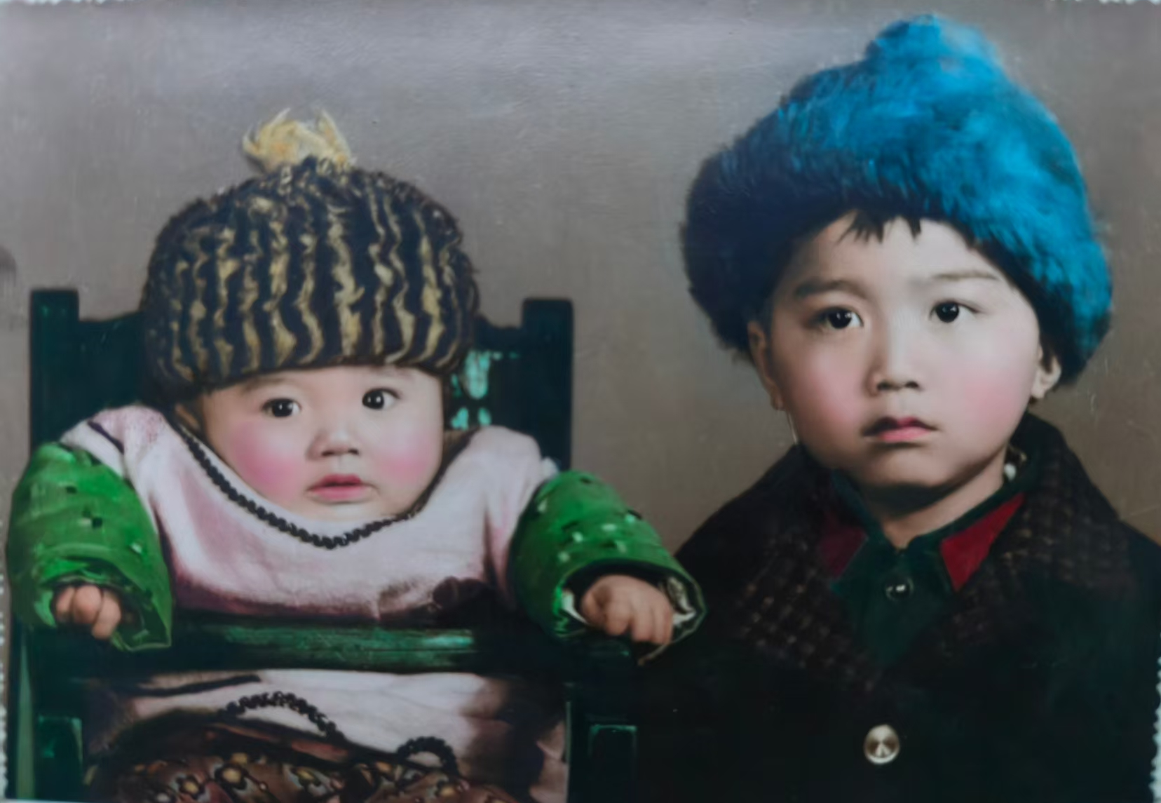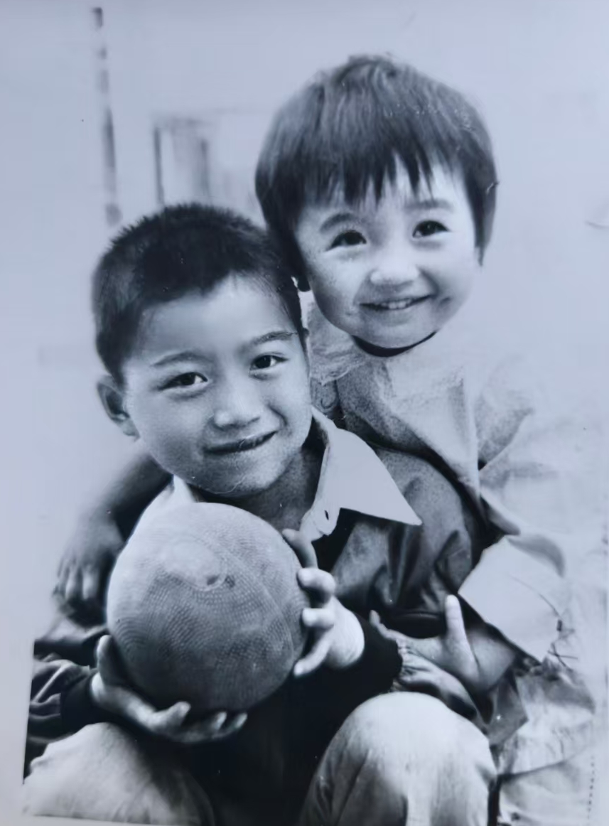 (图为六岁的哥哥霁松和百天的弟弟霁巍于1980年春节前合影。)