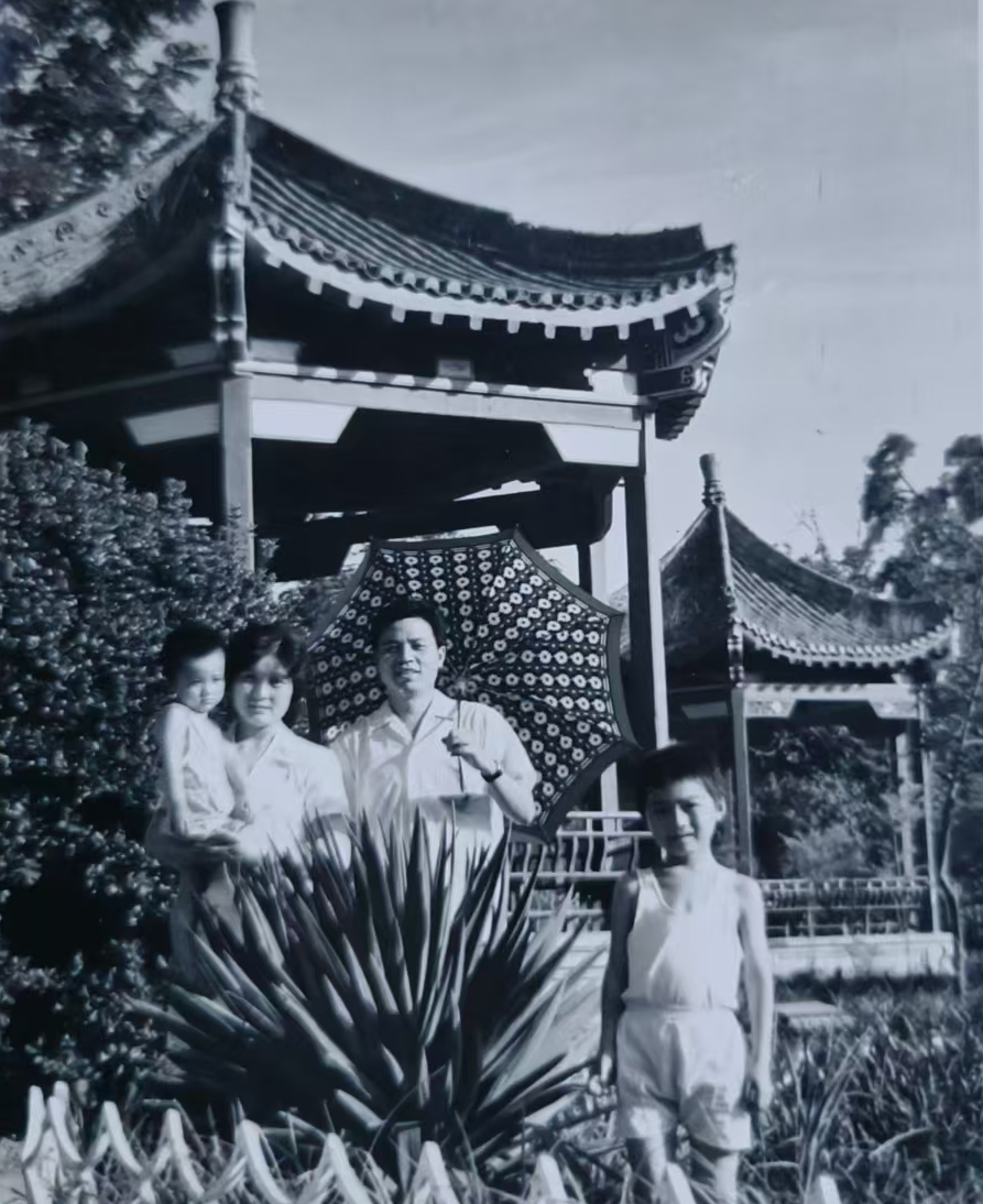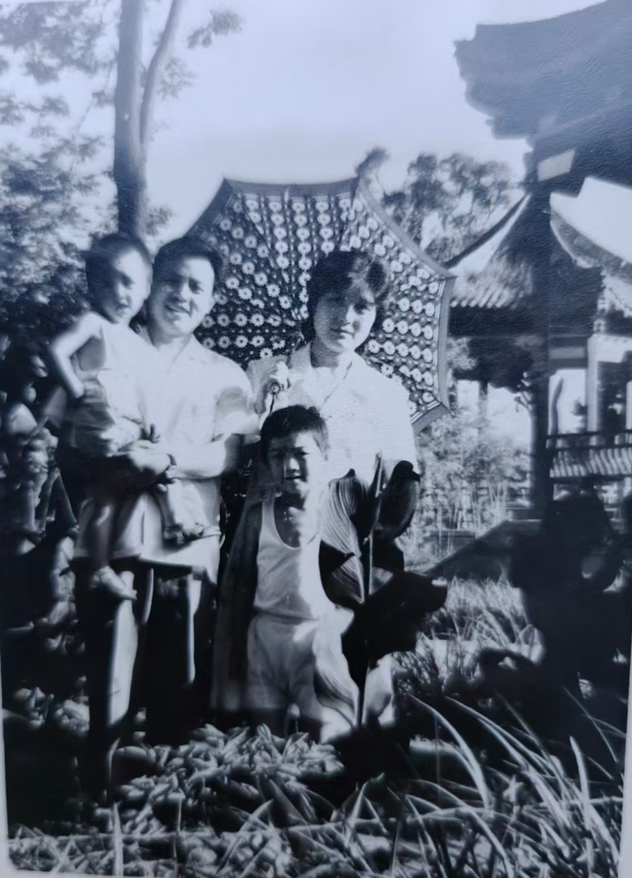 (图为1981年一家四口在碧沙岗游玩。)
