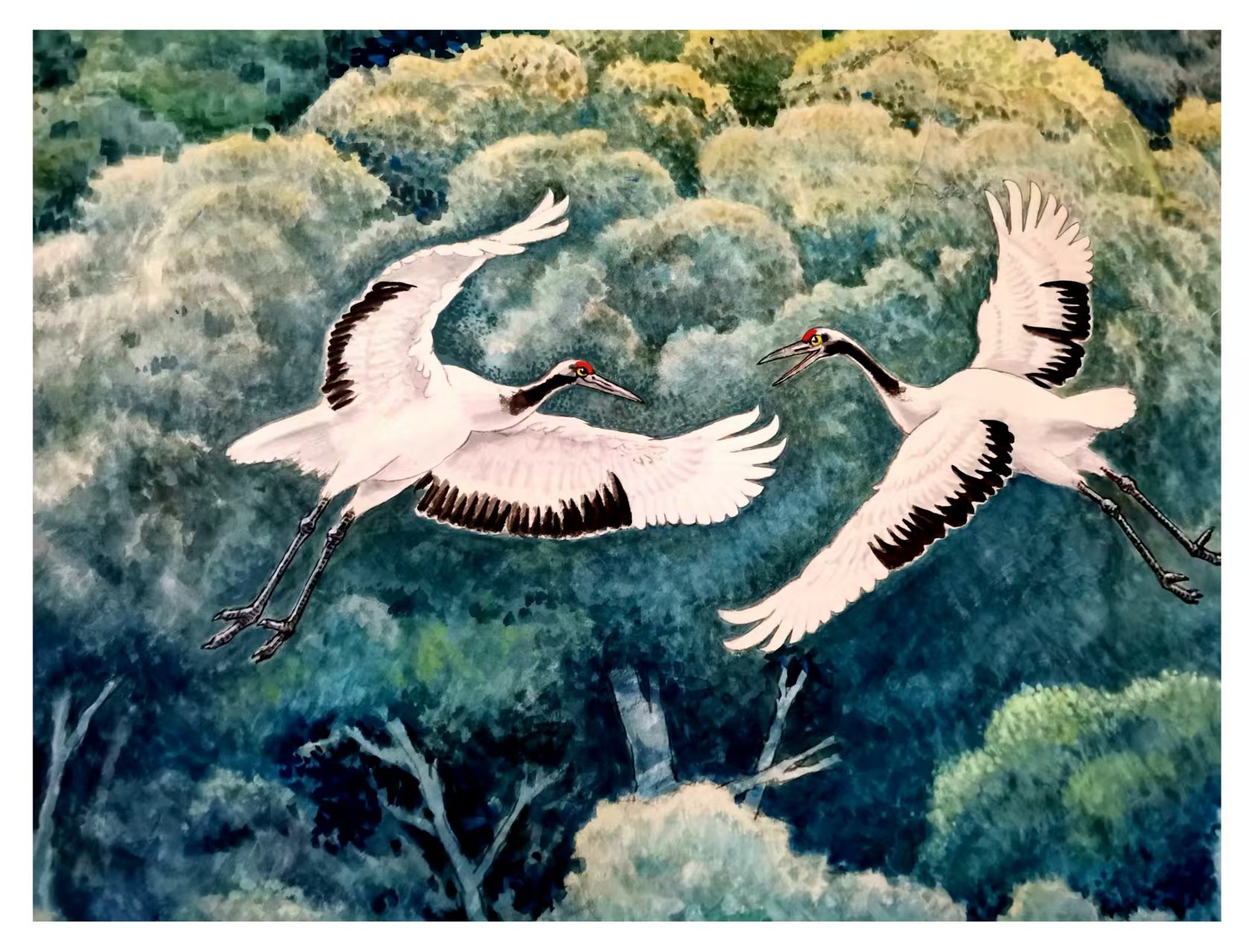 在中国花鸟画领域,纪德胜先生以丹顶鹤为精神载体,以重彩为语言突破,以中西融合为学术路径,构建出独属于自己的艺术境界。他笔下的仙鹤,既承续传统文人画的清雅品格,又跳出程式化窠臼,在色彩、造型、构图、意境上实现系统性创新,形成“墨骨为魂、重彩为衣、诗意为境、精神为核”的鲜明艺术面貌,成为当代鹤题材绘画中极具辨识度与学术价值的代表性画家。
