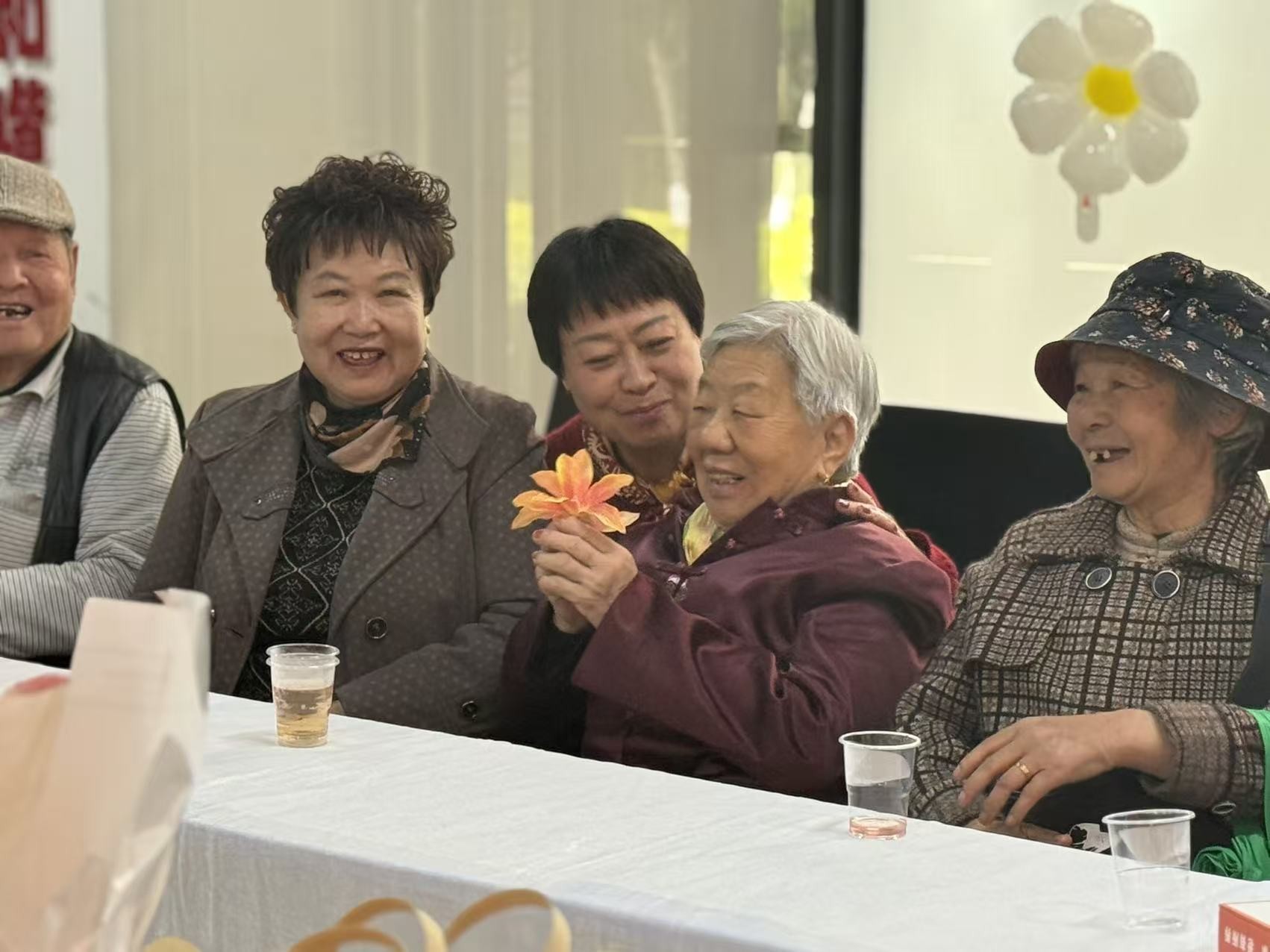 讲堂结束后,“击鼓传花·养生问答”小游戏将现场气氛推向高潮。花束在长者手中传递,大家或踊跃作答养生问题,或送上真挚的春日祝福,欢声笑语间既巩固了养生知识,也拉近了邻里距离。