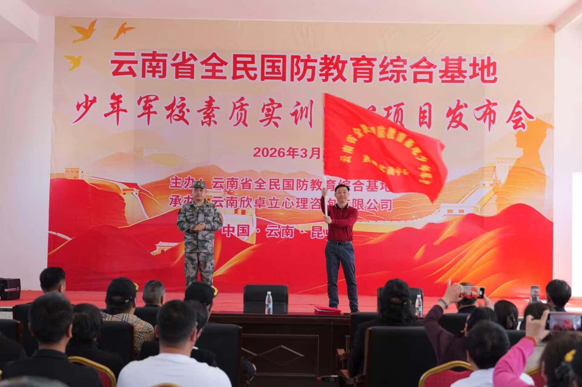 本次揭牌仪式以“以梦为马,闪耀未来”为主题,由云南省全民国防教育综合基地主办,云南欣卓立心理咨询有限公司、云南天使烙印教育科技有限公司、防控(云南)教育研究院三家单位联合承办,彰显了社会各界对青少年国防教育事业的高度关注与协同担当。