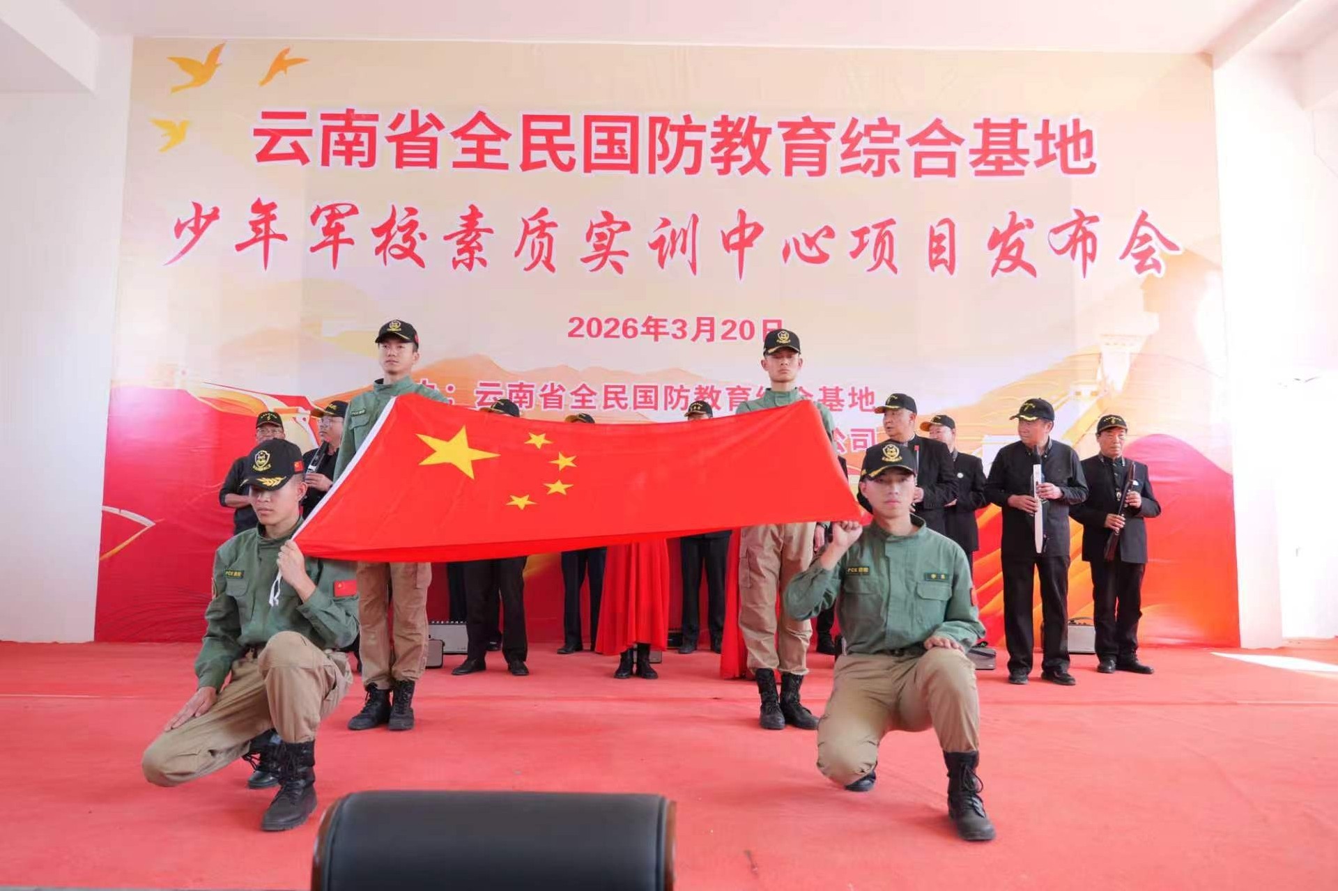 凤凰新闻网络电视台(记者郭进财)春回大地,战鼓催征。2026年3月20日下午,为认真贯彻落实省委宣传部、省教育厅联合印发的关于运用云南省全民国防教育综合基地开展国防教育的通知文件精神,云南省全民国防教育综合基地少年军校素质实训中心揭牌仪式在昆明市宜良县五星社区81号隆重举行。军歌嘹亮,旌旗猎猎,这座承载着新时代国防教育使命的青少年素质实训殿堂正式扬帆起航,标志着云南省青少年国防教育迈入规范化、体系化发展的新纪元。