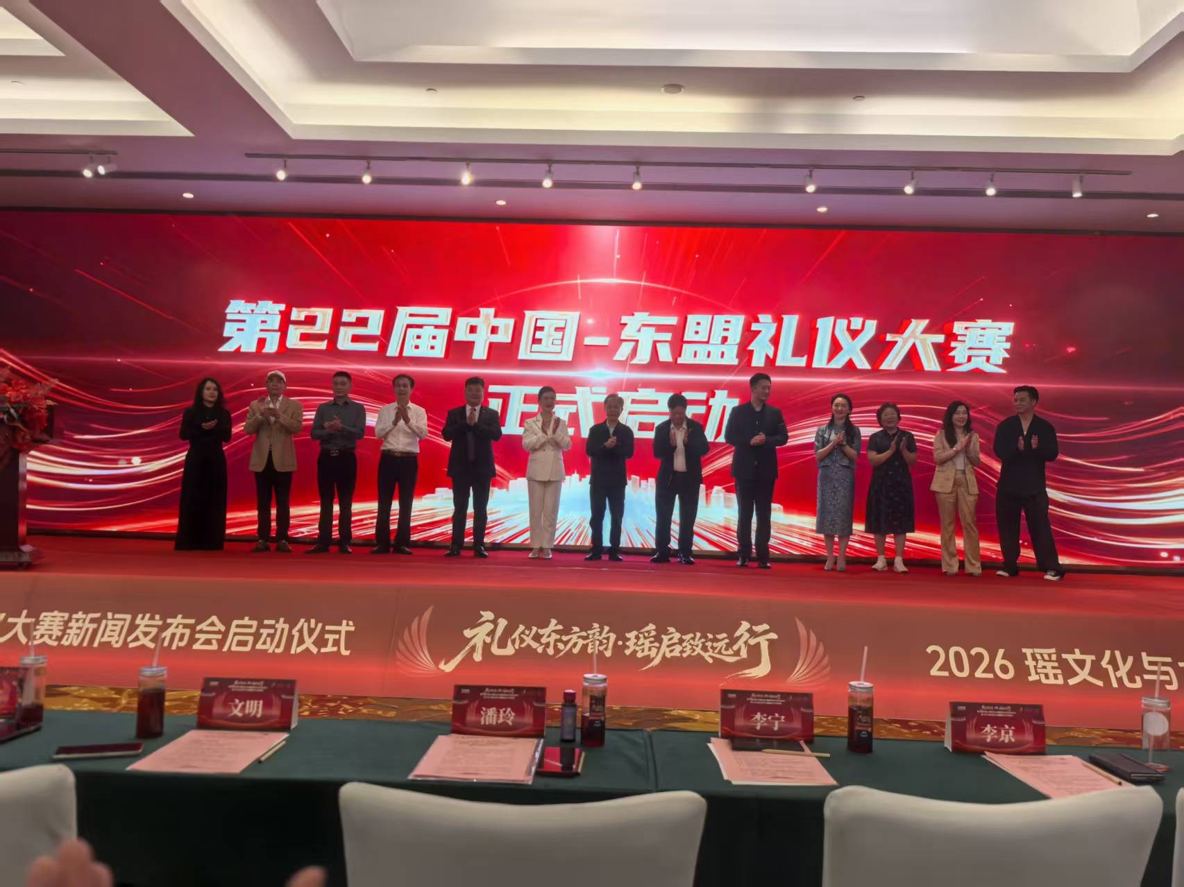 她说:站在 2026 新起点,本届大赛正式开启全新篇章!我们以“礼仪东方韵,瑶启致远行”为主题,重磅推出第 22 届中国 — 东盟礼仪大赛,并同步举办 2026 瑶文化与大健康融合峰会,实现礼仪文化、民族文化、健康产业、企业品牌四位一体、深度融合!这是我们本届大赛最鲜明的特色——以礼仪为魂,以瑶文化为韵,以大健康为本,以产业为翼!并介绍|本届大赛三大核心定位:第一,以礼仪文化为根脉,坚守东方礼仪传承,面向东盟讲好中国故事,让礼仪成为文明交流的最美桥梁。第二,以壮瑶文化与大健康为特色,深度融入民族医药、瑶药康养、健康养生理念,让礼仪不止于美,更关乎身心安康、生命品质。第三,以校企合作、企企合作为路径,推动礼仪教育、健康文化、素养教育进校园、进企业、进社会,实现文化赋能、产业赋能、品牌赋能。为确保大赛高质量推进,我们明确了全年时间表:3 月,今天正式启动;4—7 月,校企合作落地,礼仪与健康文化进园;8—10 月,全国分赛区火热开赛;10—11 月,中国总决赛巅峰对决;11 月以后,举办国际总决赛,面向东盟及“一带一路”沿线国家,打造中国 — 东盟礼仪文化最高交流平台!