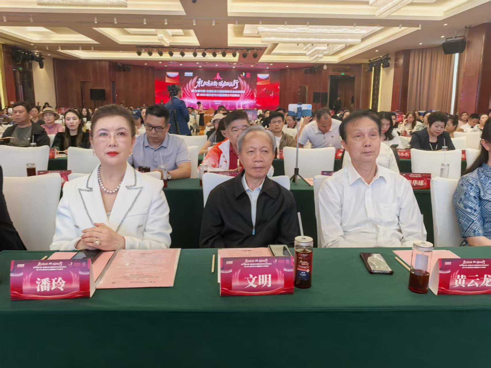 , 广西网络文化协会会长,原任广西文联副主席、广西文艺志愿者协会主席、广西文化促进会第三届副主席黄云龙, 广西工艺美术研究院总经理方 圆,广西品牌协会会长、广西品协投资集团限公司董事长.李的准等领导嘉宾、大专院校及企业代表500多人参会 。