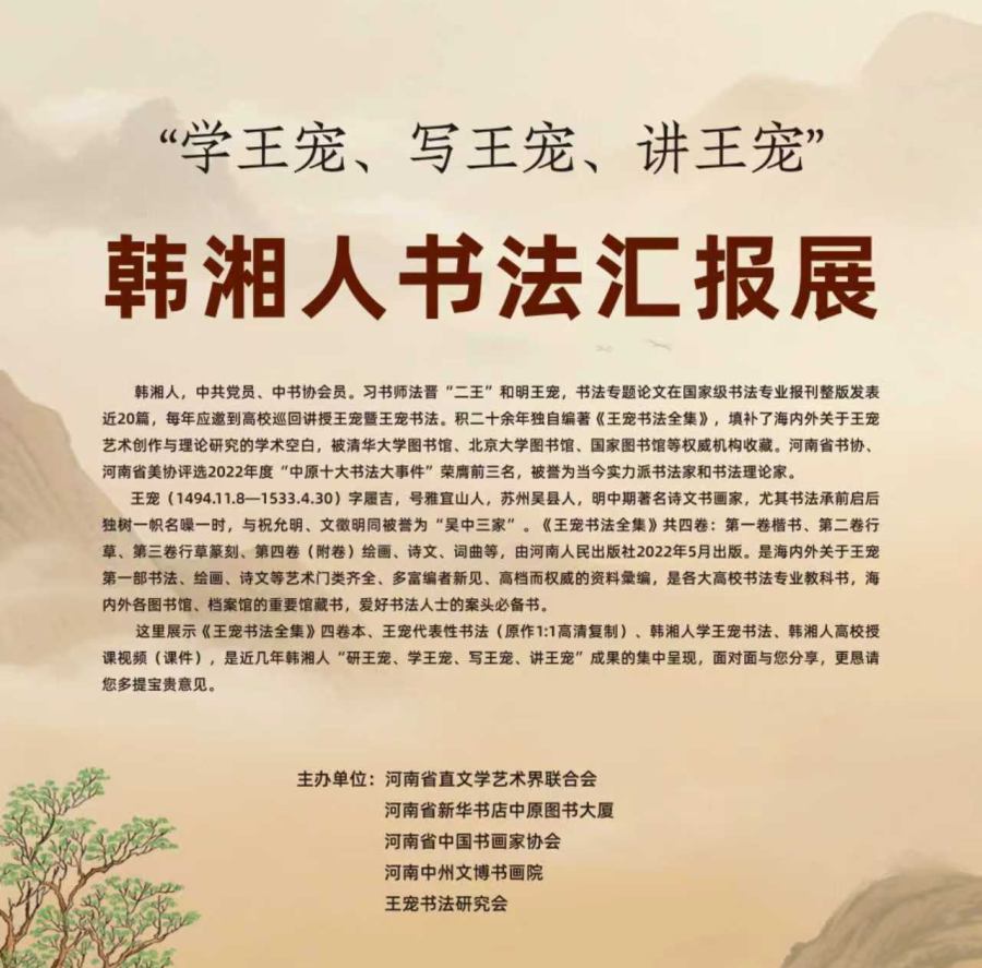 春和景明,惠风送暖,墨香盈庭,雅韵流芳。在“学王宠 写王宠 讲王宠”韩湘人书法展举办之际,笔者应邀与省会书画同仁共品墨韵风华,同探书道精髓,深入探讨传统书法的传承与创新之道,实感荣幸。