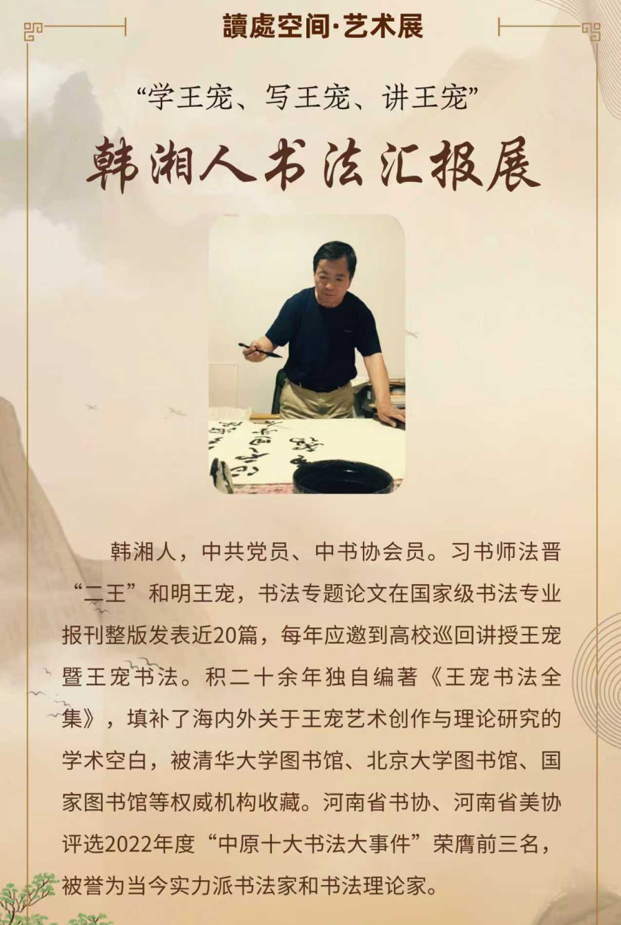 不久前,河南省中国书画家协会历经精心筹备,在河南省文旅厅、民政厅的悉心指导与批准下,于郑州大学书法学院成功召开第五届会员代表大会,顺利完成换届交接。韩湘人先生众望所归,当选为协会第五届理事会会长。在此,向韩湘人先生的光荣当选表示热烈祝贺,向本次书法展的圆满举办表示诚挚祝贺,更向韩湘人先生二十余载初心不改、沉潜深耕王宠书艺所取得的丰硕成果,致以崇高敬意。