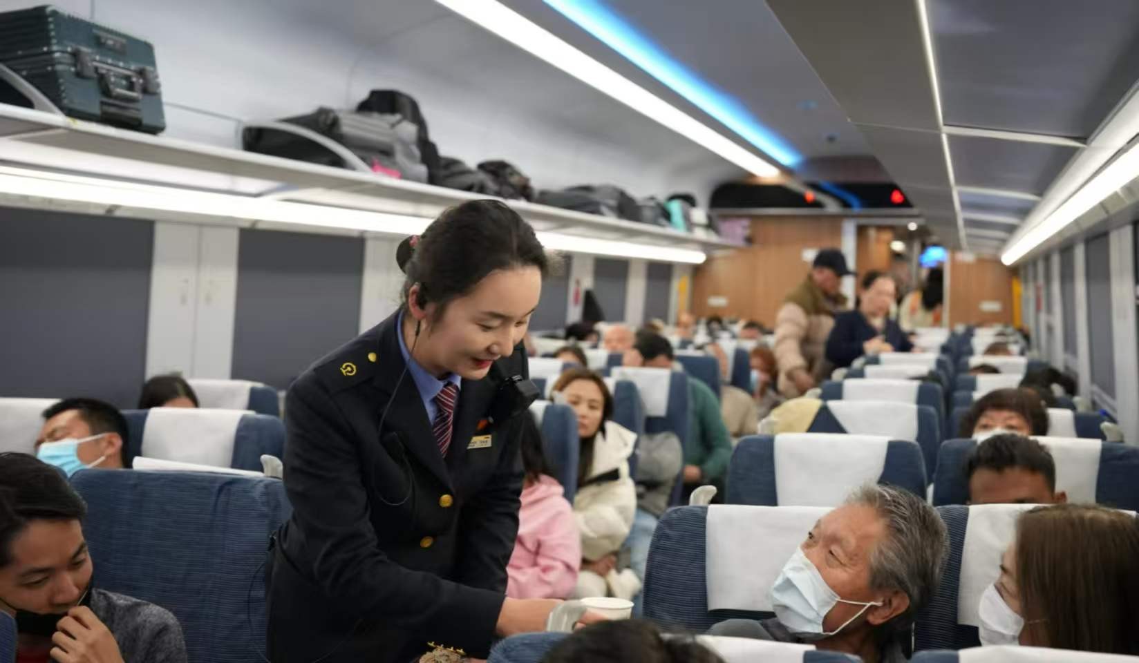 中国段日均开行客车从8列增至最高86列,单日最高发送旅客超9万人次;老挝段日均开行旅客列车由开通初期的4列增至最高18列,普速旅客列车单列扩编为10辆以上,单日最高发送旅客1.2万人次。精心组织跨境旅客运输,中国昆明至老挝万象间开行的国际旅客列车增至4列,每趟旅客列车跨境旅客席位由初期250个增至420个,出入境人数由初期每天300人次增至最高1640人次,已累计开行国际旅客列车3190余列,发送跨境旅客超80万人次。