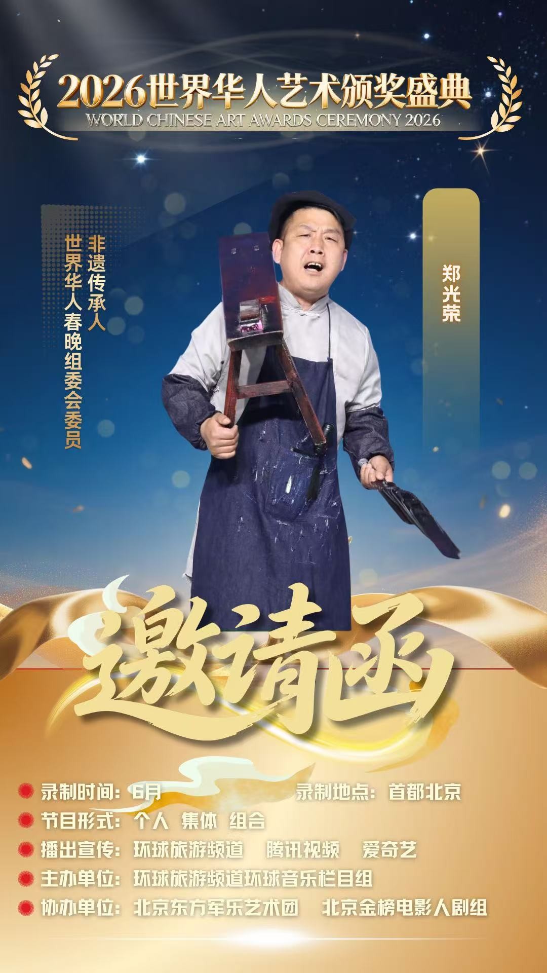 从非遗传承的践行者,到世界华人春晚的组委会委员,再到深耕公益的文艺志愿者,郑光荣的每一个身份,都承载着对传统文化的热爱与传播的责任。他始终坚信,非遗文化的传承不是墨守成规,而是要在传承中创新,在传播中扎根。在未来的工作中,他将以组委会委员的身份为桥梁,让非遗吆喝走进更多华人的视野,让这声承载着中华民俗韵味的吆喝,成为联结全球华人文化情感的纽带。