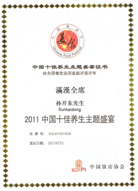 俗话说“民以食为天”,中国向来就是注重饮食养生的国家。孙开东通过对鲁菜和御膳研究十几年的挖掘、整理、继承、创新,致力于中国御膳饮食文化发展,举办过多次御膳文化底蕴深厚、烹饪原料精优的宫廷宴;创办系列御膳宴能延年益寿,强身健体;集历代宫廷御膳之大成,撰写了121套宴席餐单,整理撰写了《皇家御膳大典》、《养生宴》、《食疗膳宴》、《全鹿御宴》、《皇家素宴》、《中华道家宴》、《养生茶膳宴》、《御龙养生锅》、《千禧宴》、《大唐八珍宴》、《乾隆养生宴》《御府宴》、《沉香养生宴》、《神医食疗宴》、《红色将军宴》、《府邸私宅宴》、《功能养生宴》、《脏腑调理宴》、《女士益寿宴》、《男士养生宴》、《道家五行宴》、《老人颐养宴》、《防癌康寿宴》等。