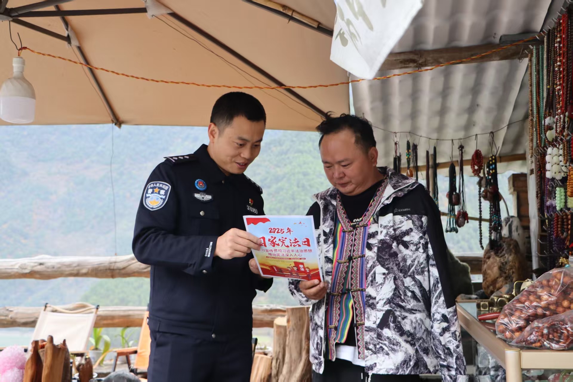 “师傅,带上这份宪法读本,路上看看,平安出行!”执勤民警在查验间隙,将普法宣传与便民服务相结合。检查站不仅是边境安全的关口,也成为流动的法治宣传站。民警向过往旅客、司机发放宣传资料,结合边境实际讲解国家安全、边境法规等内容,让法治意识随着蜿蜒的丙察察公路,走进每一段旅程、温暖每一颗人心。