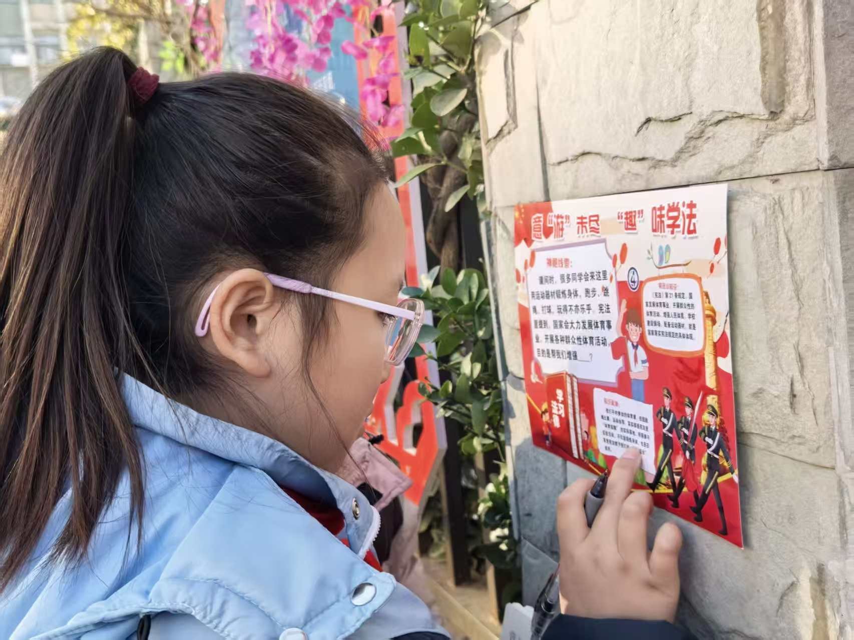 最受学生欢迎的,当属 “意‘游’未尽,‘趣’味学法” 宪法日校园探秘游戏。将宪法知识巧妙融入趣味线索中,在校园的各个角落设置了探秘关卡。学生们手持任务卡,根据线索寻找隐藏的宪法知识问题,答对所有问题就能兑换精美小奖品。“我国的根本大法是什么?”“公民的基本权利有哪些?”…… 同学们穿梭在校园里,一边寻找线索,一边热烈讨论答案,在轻松愉快的游戏氛围中巩固了宪法知识,体会到学法的乐趣。参与游戏的学生表示,这种闯关答题的方式特别有意思,让他们在玩的过程中记住了很多宪法小知识。