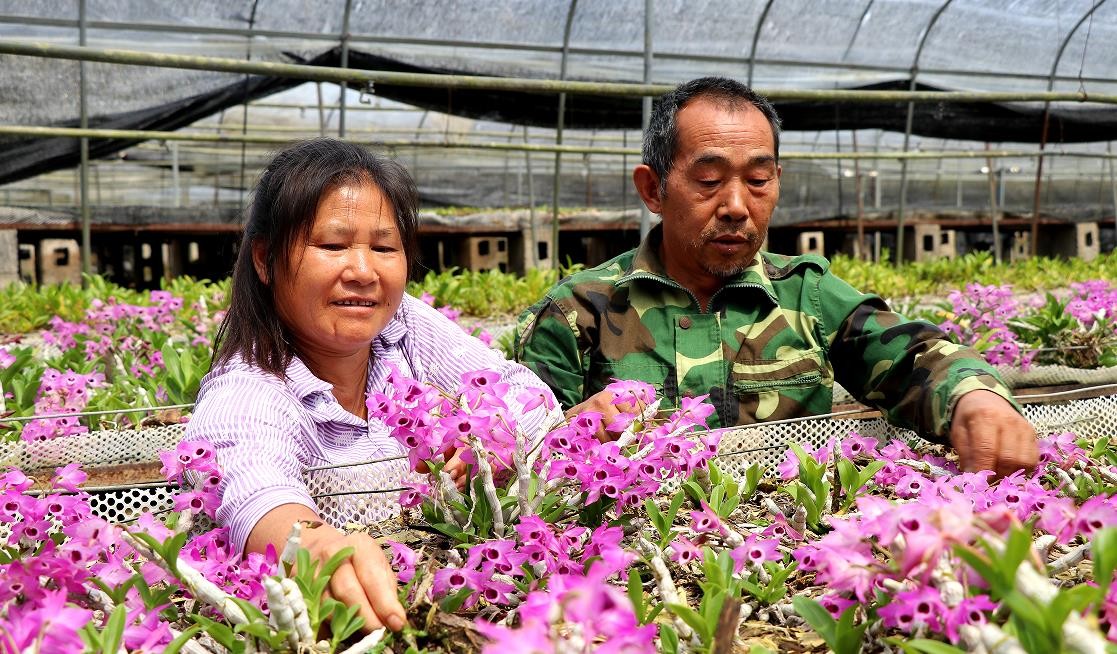 石斛花卉的蓬勃发展,离不开返乡创业青年的电商助力。蒋德凡夫妇通过直播带货,将龙陵石斛花卉销往全国各地。