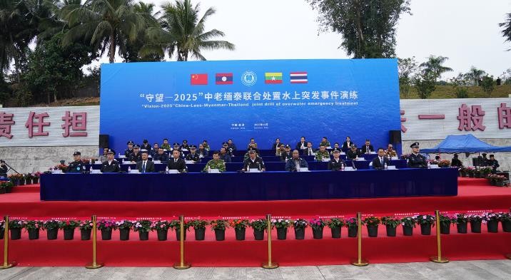 凤凰新闻网络电视台云南讯(记者 张红飞 张密)北京时间12月25日上午10时,中老缅泰湄公河联合巡逻执法四国有关执法部门,在澜沧江景哈水域开展“守望—2025”中老缅泰四国处置水上突发事件联合演练,旨在深入贯彻落实澜沧江—湄公河执法安全合作部长级会议精神,提升四国执法部门联合处突实战能力,促进执法合作不断走深走实。