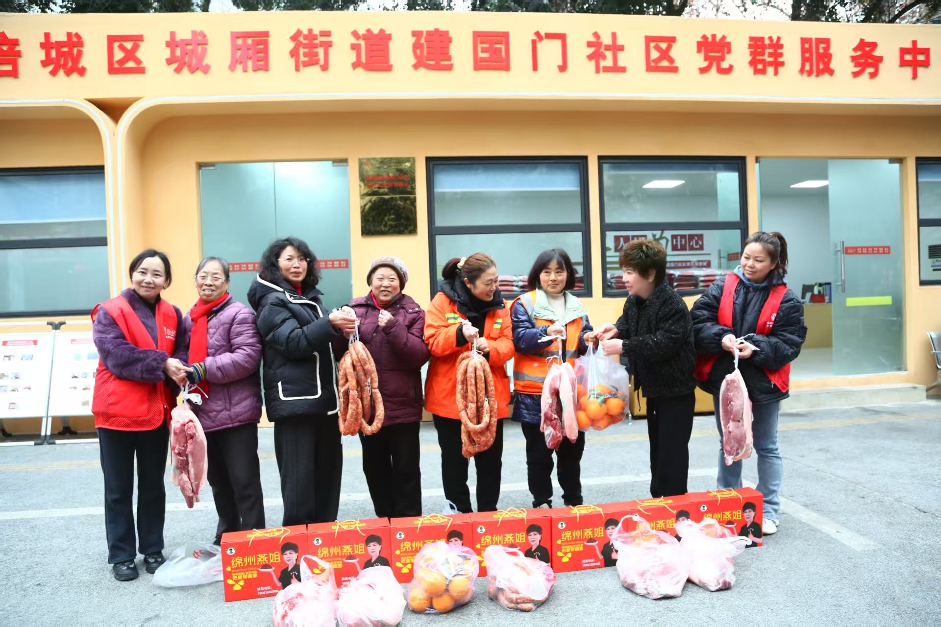 (凤凰新闻网络电视台讯)2026年1月28日上午,在绵阳市涪城区城厢街道建国门社区党委书记蒲陶军的安排下,社区居委会副主任刘应陪同四川好人绵州燕姐来到建国门社区,绵州燕姐亲自把香肠,水果,礼品盒和新鲜猪肉送给环卫工人和老人的手中。