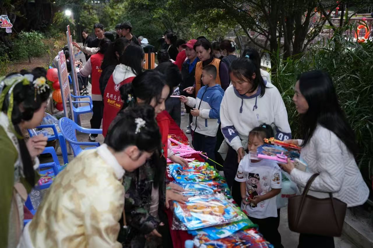 现场工作人员身着汉服,仿佛从古画中走出,传统古韵油然而生,成为一道流动的风景线,让中华传统文化在互动中悄然传递。
