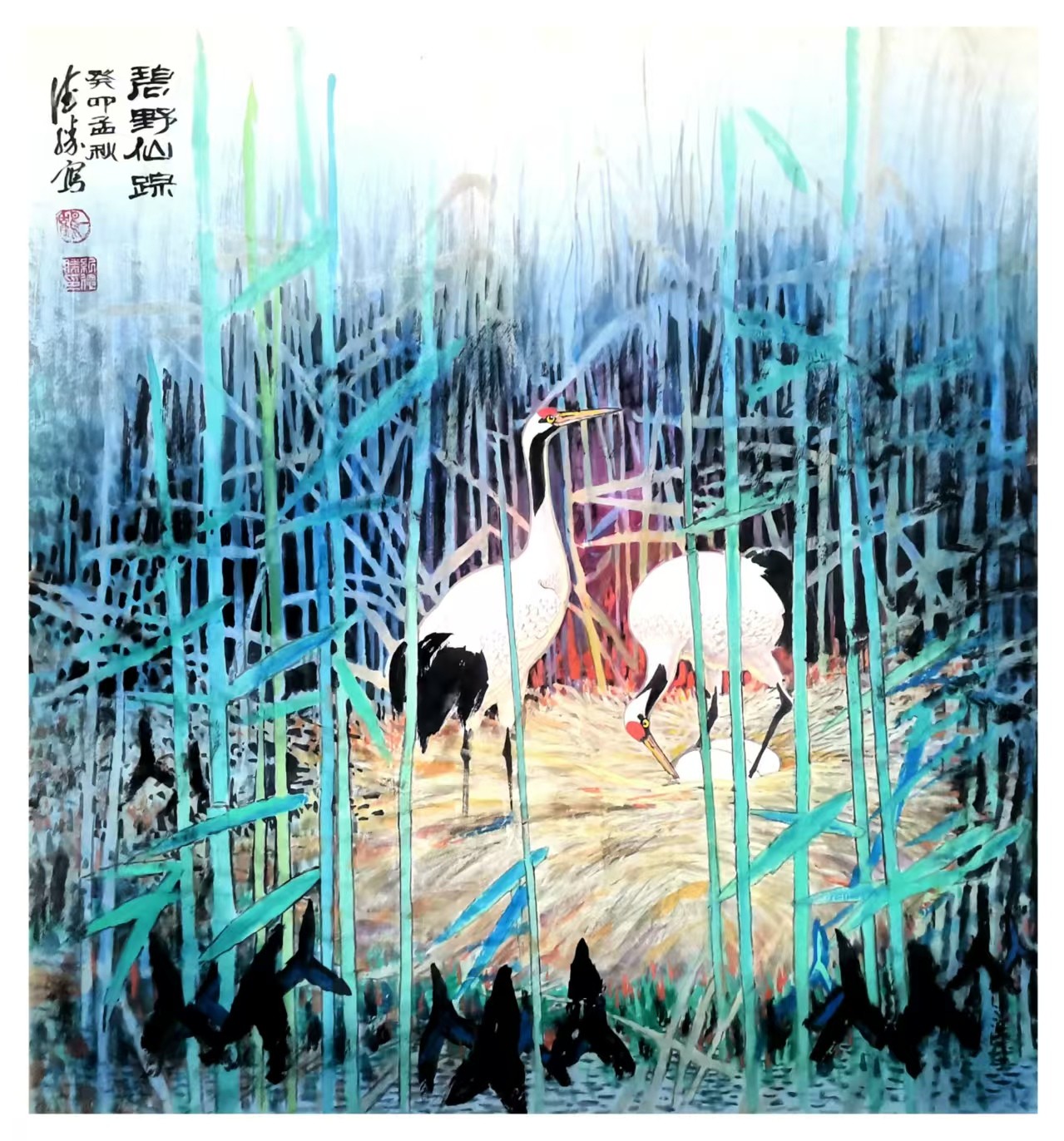 在中国花鸟画领域,纪德胜先生以丹顶鹤为精神载体,以重彩为语言突破,以中西融合为学术路径,构建出独属于自己的艺术境界。他笔下的仙鹤,既承续传统文人画的清雅品格,又跳出程式化窠臼,在色彩、造型、构图、意境上实现系统性创新,形成“墨骨为魂、重彩为衣、诗意为境、精神为核”的鲜明艺术面貌,成为当代鹤题材绘画中极具辨识度与学术价值的代表性画家。